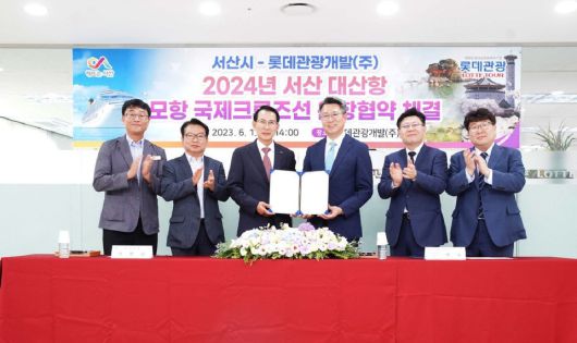 지난 6월 1일 이완섭 시장이 백현 롯데관광개발 대표이사와 국제크루즈선 운항 협약을 체결했다. |