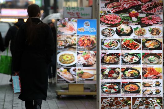 6일 서울 중구 명동의 한 음식점에 입간판이 설치돼 있다. /뉴스1 |
