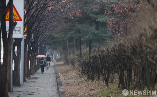 [서울=뉴스핌] 최지환 기자 = 6일 오후 서울 영등포구 여의도공원 인근에서 시민들이 우산을 쓰고 이동하고 있다. 2023.12.06 choipix16@newspim.com