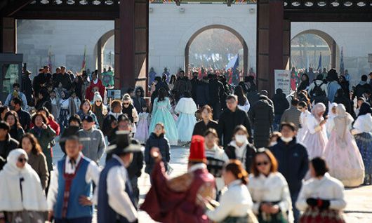 서울 종로구 경복궁이 관람객들로 북적이고 있다. 뉴스1 |