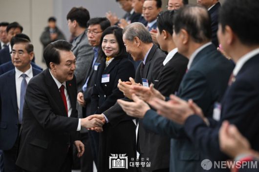 [서울=뉴스핌]윤석열 대통령이 6일 부산 동구 부산항국제전시컨벤션센터에서 열린 '부산시민의 꿈과 도전 간담회'에서 참석자들과 악수하며 인사하고 있다. [사진=대통령실] 2023.12.06 photo@newspim.com 저작권자(c) 글로벌리더의 지름길 종합뉴스통신사 뉴스핌(Newspim), 무단 전재-재배포 금지