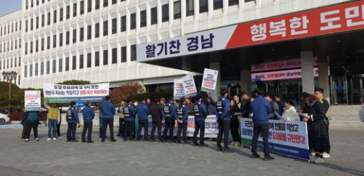 경남도는 기자회견 개최 소식을 접한 직후부터 개최 전날까지 회견 장소에 대해 노조 측과 논의했으나 결국 받아들여지지 않았다고 전했다.