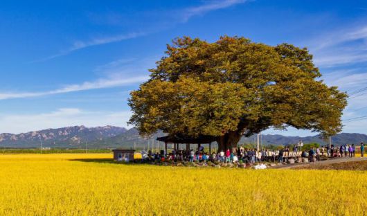 On October 18, a concert was held under the zelkova tree, which has been protecting the residents of the village. In the shade of the large tree, more than 200 people enjoyed the special concert against the backdrop of golden fields and Wolchulsan Mountain.