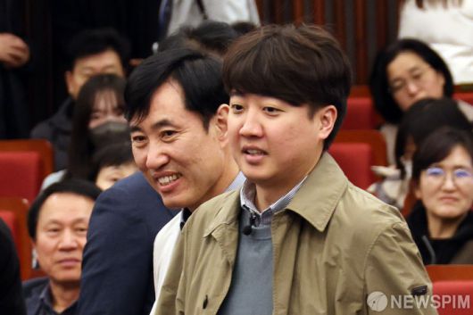 [서울=뉴스핌] 이형석 기자 = 이준석 국민의힘 전 대표(오른쪽)와 하태경 의원이 20일 오후 서울 여의도 국회 도서관에서 열린 하태경 출판기념회에 들어서고 있다. 2023.11.20 leehs@newspim.com |