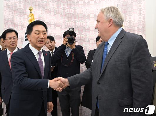 (서울=뉴스1) 송원영 기자 = 김기현 국민의힘 대표와 인요한 혁신위원장이 6일 서울 여의도 국회에서 회동을 하고 있다. (공동취재) 2023.12.6/뉴스1