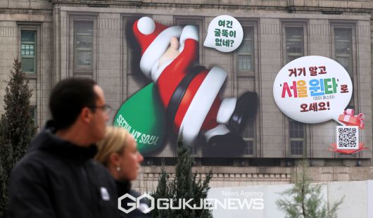 (서울=국제뉴스) 6일 서울 중구 서울도서관 외벽 꿈새김판에 서울윈타(서울윈터페스타) 2023 홍보 문구가 걸려 있다. 서울윈타 2023은 오는 15일부터 내년 1월 21일까지 '세상에 없던 빛, 서울을 물들인다'를 주제로 광화문 일대에서 열린./사진=이용우기자