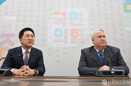 [서울=뉴스핌] 이형석 기자 = 김기현 국민의힘 대표와 인요한 혁신위원장이 6일 오후 서울 여의도 국회 당대표실에서 간담회에 앞서 대화하고 있다. 2023.12.06 leehs@newspim.com
