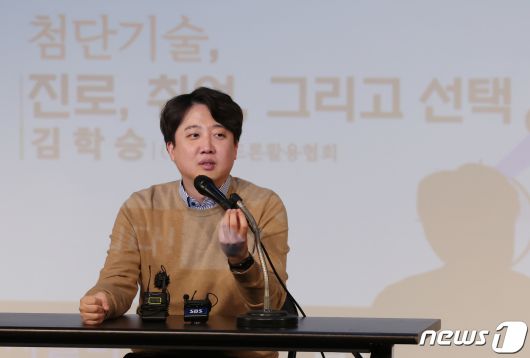 (서울=뉴스1) 김민지 기자 = 이준석 전 국민의힘 대표가 6일 오후 서울 노원구 광운대학교에서 '더 나은 미래를 향한 우리의 고민'이라는 주제로 강연하고 있다. 2023.12.6/뉴스1