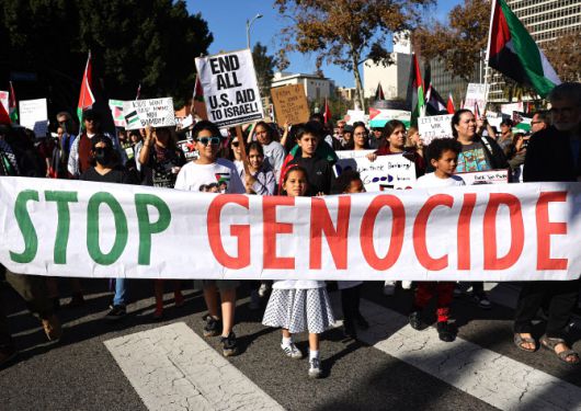 지난 2일(현지시간) 미국 캘리포니아 로스앤젤레스에서 일시휴전 종료 직후 팔레스타인 주민들이 대피해 있는 가자지구 남부를 공격한 이스라엘을 규탄하는 시위가 벌어졌다. (사진=AFP) |