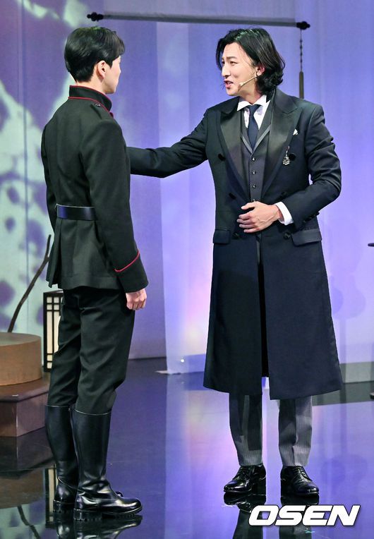[OSEN=민경훈 기자] 6일 오후 서울 중구 충무아트센터 중극장 블랙에서 뮤지컬 '리진' 프레스콜이 진행됐다. 배우 박건형이 김제하가 무대 위에서 연기를 하고 있다. 2023.12.06 / rumi@osen.co.kr