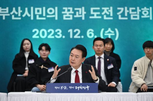 윤석열 대통령, 부산시민의 꿈과 도전 격려 간담회 발언. 대통령실 제공 |