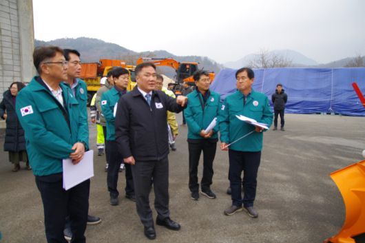 백원국 국토교통부 제2차관이 강원지역 도로제설, 철도건설 현장 찾아 안전사고 예방을 당부하고 있다. [사진=국토부] |