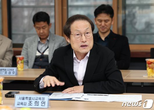 (서울=뉴스1) = 조희연 서울시교육감이 6일 오후 서울 강동구 배재중학교를 방문, 학교 현안에 대해 교직원 등과 간담회를 하고 있다. (서울시교육청 제공) 2023.12.6/뉴스1photo@news1.krCopyright ⓒ 뉴스1. All rights reserved. 무단 전재 및 재배포, AI학습 이용 금지.