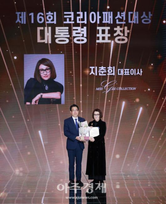 지춘희 미스지컬렉션 대표(오른쪽)가 6일 오후 서울 강남구 섬유센터에서 열린 '2023 대한민국 패션대상'에서 대통령 표창을 수상했다. 2023.12.06