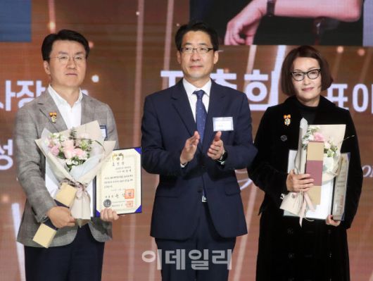 [이데일리 김태형 기자] 이준서(왼쪽) 삼성물산 패션부문 부사장과 지춘희(오른쪽) 미스지콜렉션 대표이사가 6일 서울 대치동 섬유센터에서 열린 '2023 대한민국 패션대상' 행사에서 대통령 표창을 수상하고 있다.
