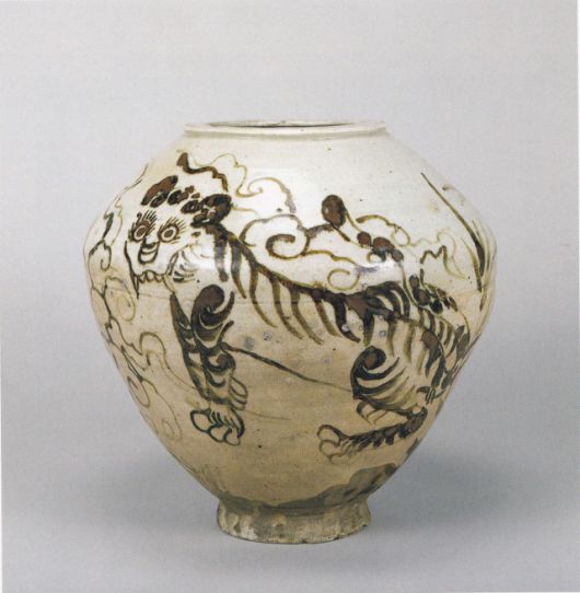 일본 오사카시립동양도자미술관이 소장하고 있는 철화 호랑이 백로문(虎鷺紋) 항아리에는 우리 전통문화 속에 깊이 스며 있는 호랑이에 대한 친근한 정서가 간결하면서도 호방한 필치로 잘 표현돼 있다. 단군신화에서 사람이 되고자 한 두 동물 중에 하나이며 풍수에서는 우백호로 등장하고 까치호랑이 그림에서는 길상과 벽사의 의미를 지닌 동물이 호랑이다. 그런 호랑이가 도자기의 둥근 표면 위에서 귀엽고 익살스러운 자태를 띠고 있는 것은 이 동물이 사람에게 도움을 주는 영물(靈物)이기 때문이다. 우리 전통 도자기 문양에 등장하는 호랑이는 자유로움과 상상의 혼합체다. 크고 작은 갈색의 선들이 모여 순박한 인상의 호랑이 얼굴이 만들어지고 짙고 엷은 철화 안료의 농담은 호랑이 특유의 줄무늬 문양에 생기를 불어넣는다. 격식과 실사의 구속에서 벗어나 자유분방함과 정감이 가득한 우리의 전통 호문은 옛이야기 속 호랑이의 모습 그대로를 담고 있다. 그래서인지 이 도자기를 보고 있자면 순박한 호랑이 한 마리가 우리 삶에 들어오는 듯 따스함이 느껴진다.