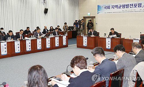 (제주=연합뉴스) 고성식 기자 = 국회와 지방자치단체가 지방 발전을 위해 협력하는 '국회 지역균형발전포럼'이 6일 제주도청에서 열렸다.
