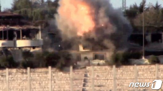 23일(현지시간) 공개된 영상에서 이스라엘군이 레바논 무장정파 헤즈볼라를 표적으로 삼고 레바논의 한 건물에 공격을 가하고 있다. 2023.11.24 ⓒ 로이터=뉴스1 ⓒ News1 정지윤 기자 |