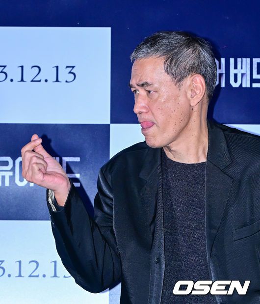 [OSEN=지형준 기자] 6일 오후 서울 CGV 용산아이파크몰에서 영화 '언더 유어 베드' 언론시사회가 열렸다. '언더 유어 베드’는 대학 시절 첫사랑을 우연히 만나 그 곁을 맴돌며 선을 넘어버린 한 남자의 하드보일드 멜로. 사토 감독이 포토타임을 하고 있다. 2023.12.06 / jpnews.osen.co.kr