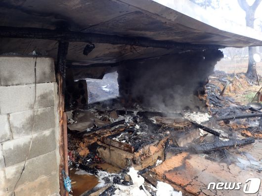 (부산=뉴스1) 손연우 기자 = 6일 낮 12시10분쯤 부산 기장군 장안읍 인근 야산에 있는 농막에서 전기난로 과열로 추정되는 불이 났다.