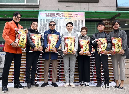 골프관계자들이 함께한 '쌀 한 포대의 기적, 연탄 한 장의 기적' 연말 자선 기부 행사가 6일 오전 고양시 대자동 벧엘교회에서 진행됐다. 이날 가수 안계범, 서원밸리CC 정석천 상무, 레저신문 이종현 국장, 가수 박군, 경도상사 김남희 대표, 가수 강은철, 프로골퍼 김선미가 전달식을 갖고 있다. <저작권자 Copyright ⓒ MHN스포츠 무단전재 및 재배포 금지>