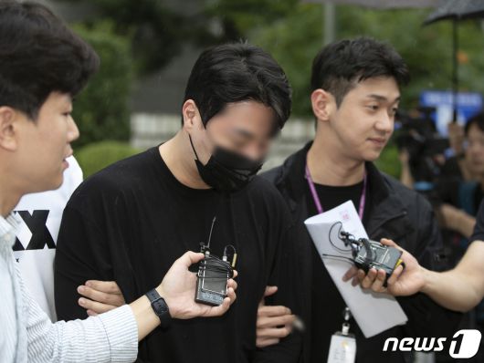 향정신성의약품을 투약한 채 롤스로이스 차량을 몰다 행인을 치어 중상을 입힌 20대 남성 A씨가 11일 오전 서울 서초구 서울중앙지방법원에서 열린 구속 전 피의자심문(영장실질심사)을 마친 후 법정을 나서고 있다. 2023.8.11/뉴스1 ⓒ News1 신웅수 기자 |