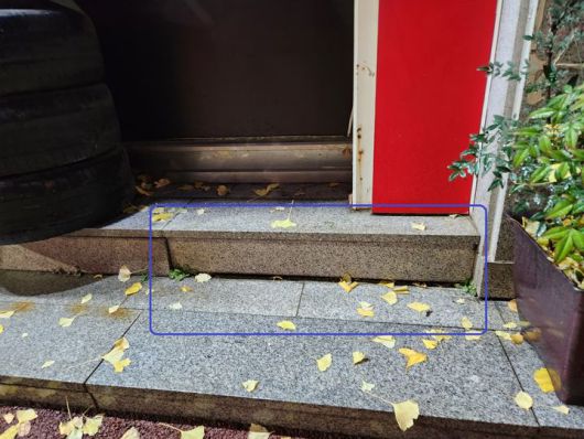 [광주=뉴시스] 6일 오후 5시 6분께 광주 북구 중흥동 도시철도 공사 2호선 현장 앞 한 3층 건물에서 '건물 바닥 대리석이 흔들리는 것 같다'는 신고가 접수돼 행정 당국이 안전 조치에 나섰다. 파란 직사각형 안은 입주 상인이 도시철도 공사에 따라 발생했다고 주장한 대리석 균열. (사진=독자 제공) 2023.12.06. photo@newsis.com *재판매 및 DB 금지 |