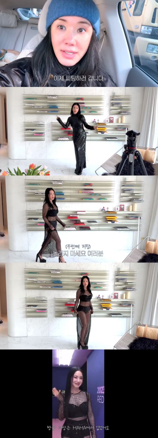 스타일리스트도 "진짜 멋있다. 뒤가 장난 아니다"라며 감탄했다. 엄정화는 "방금 의상은 'MAMA'에서 입었다"고 알렸다.