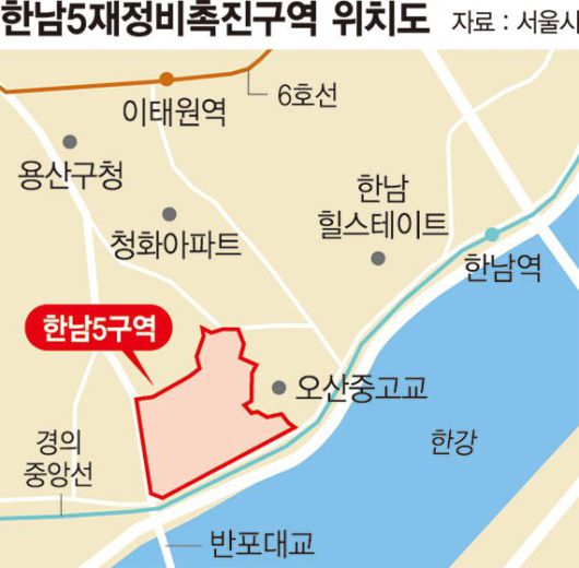 서울시는 지난 5일 열린 제11차 도시재정비위원회에서 '한남5재정비촉진구역 블럭별 용적률 및 높이 조정에 따른 재정비촉진계획 경미한 변경과 경관심의(안)'을 조건부 가결했다고 6일 밝혔다.