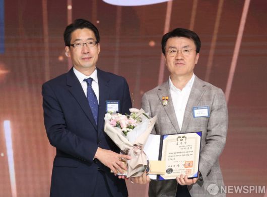 [서울=뉴스핌] 이호형 기자 = 이용필 산업부 첨단산업정책관이 6일 오후 서울 대치동 섬유센터에서 열린 2023 대한민국 패션대상에서 삼성물산 패션부문 이준서 부사장에게 대통령 표창을 수여한 후 기념촬영을 하고 있다.2023.12.06 leemario@newspim.com 저작권자(c) 글로벌리더의 지름길 종합뉴스통신사 뉴스핌(Newspim), 무단 전재-재배포 금지
