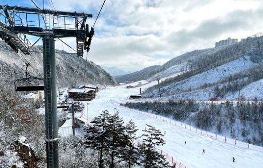 부영그룹 오투리조트 스키장은 ‘대기 줄 없는 리프트‧여유로운 슬로프’에서 스키를 즐길 수 있으며, 태백산맥 줄기의 장엄한 자연 풍광도 볼 수 있다.