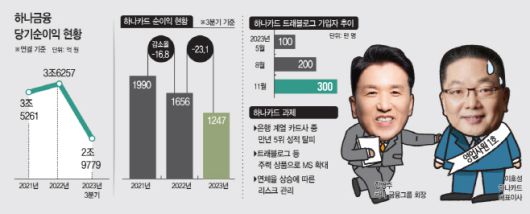 이 대표가 이끌고 있는 하나카드의 성적표는 하나금융지주 내에서도 난제다. 카드사 순익 기준 4~5위권인 성적표가 수년째 그대로여서다. 카드산업이 하향세를 겪고 있긴 하지만 최근 현대카드는 애플페이 등으로 고객수를 크게 늘렸고, 우리카드도 미얀마나 인도네시아 등 해외에서 선전 중이다. 하나카드가 올해 출시한 '트래블로그'가 가입자 300만명을 돌파하며 흥행에 성공하긴 했지만, 올 3분기 순이익은 전년 대비 23%나 감소했다. 연체율은 은행계 카드사 중에서 가장 높다. 특단의 조치가 필요한 시점이다.
