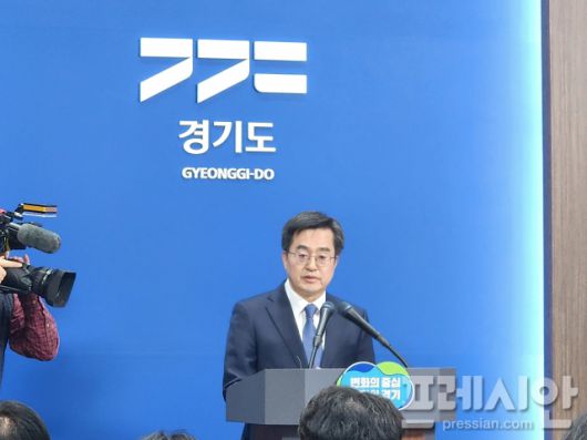 ▲지난 4일 김동연 경기도지사가 긴급 브리핑을 열고 경기도청에 대한 검찰의 압수수색을 비판하고 있다. ⓒ프레시안(전승표) |