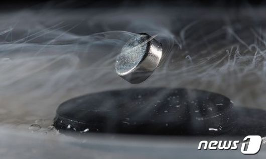 초전도체 위에서 자석이 공중부양하고 있는 사진. 이같은 현상은 초전도체의 마이스너 효과에 의해 나타난다. (로체스터 대학 사진 / J. Adam Fenster) /뉴스1 |