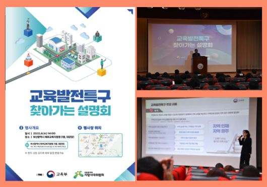 설명회에서 교육부 관련 과장, 사무관이 교육발전특구 계획을 안내하고, 교육개혁 과제, 학교복합시설 등을 설명했으며, 시교육청 유초등교육과에서는 ‘돌봄·교육 이음 프로젝트’ 사례를 발표했다.