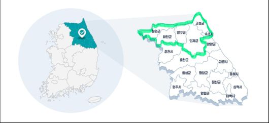 중앙선거관리위원회 산하 국회의원선거구획정위원회가 국회에 제출한 내년 총선 선거구 획정안에는 강원도 속초시와 철원·화천·양구·인제·고성군이 한 지역구로 돼 있다. 강원특별자치도청 인터넷 홈페이지 지도 자료를 토대로 선거구 획정구역을 표시했다. |