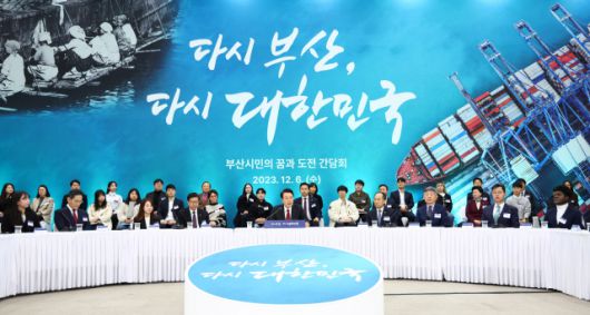 6일 부산시 등에 따르면 이날 오전 11시 부산항 국제전시컨벤션센터에서 윤 대통령과 박형준 부산시장, 기재부, 행안부, 산업부, 국토부, 해수부 장관 등 중앙부처 장관 및 주요 기업대표, 부산시민들이 참석한 가운데 엑스포 유치에 큰 성원을 보내준 부산시민들을 격려하고 부산의 글로벌 허브도시 조성방안에 대해 논의하는 간담회가 열렸다.