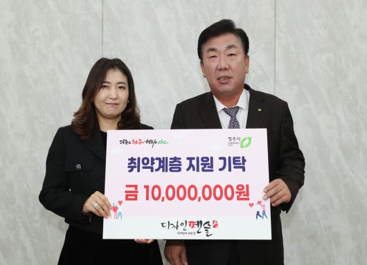 [박장미 기자] 디자인펜슬은 6일 청주시청을 방문해 이범석 시장에게 취약계층을 위해 써달라며 1000만원을 기탁했다./박장미기자<저작권자 Copyright ⓒ 충청일보 무단전재 및 재배포 금지>