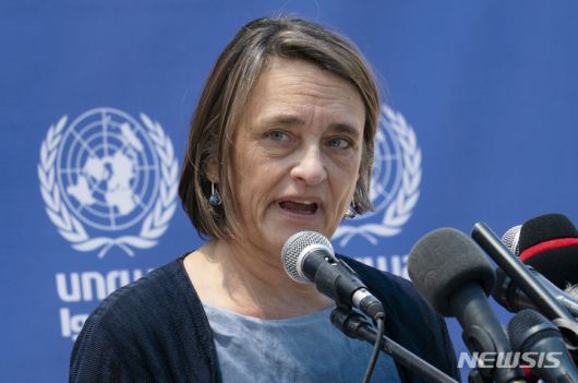 [가자지구=AP/뉴시스]캐나다의 린 헤이스팅스 유엔 중동평화과정 특별조정관 겸 팔레스타인 점령지역 인도주의 조정관이 2021년 5월23일 기자회견에서 가자지구에서 11일 간 지속된 이스라엘과 하마스 간 전쟁 종식에 대해 이야기하고 있다. 이스라엘의 엘리 코헨 외무장관이 6일 하마스에 대한 반대 발언을 거부한 린 헤이스팅스 유엔 인도주의 조정관에 대한 거주 비자가 취소될 것이라고 말했다고 BBC가 보도했다. 2023.12.06. |