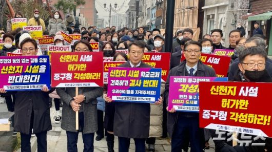 주민들은 성명에서 "인천 중구청이 신천지 갈등유발 시설에 대한 사전 고지를 미흡하게 처리하면서 주민 대다수가 이 시설이 신천지 소유라는 점을 인지하지 못했다"면서, 용도 변경 내용대로 시설이 들어설 경우 신천지로 인한 피해가 우려된다고 규탄했습니다.