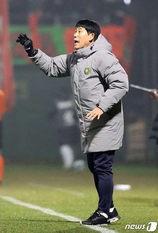 (김포=뉴스1) 김진환 기자 = 6일 오후 경기 김포 솔터축구장에서 열린 하나원큐 K리그 승강 플레이오프 1차전 김포FC와 강원FC의 경기, 고정운 김포FC 감독이 선수들에게 작전을 지시하고 있다. 2023.12.6/뉴스1kwangshinQQ@news1.krCopyright ⓒ 뉴스1. All rights reserved. 무단 전재 및 재배포, AI학습 이용 금지.