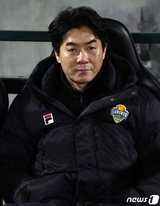 (김포=뉴스1) 김진환 기자 = 6일 오후 경기 김포 솔터축구장에서 열린 하나원큐 K리그 승강 플레이오프 1차전 김포FC와 강원FC의 경기, 윤정환 강원FC 감독이 그라운드를 응시하고 있다. 2023.12.6/뉴스1