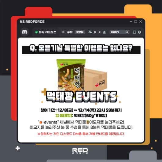 새로운 플랫폼 오픈을 기념해 농심의 스낵 '먹태깡'을 포함한 다양한 후원사 경품을 팬들에게 제공하는 이벤트도 진행한다. 특히 12월 8일부터 14일까지 판매되는 '얼리버드' 멤버십 구매자들에게는 선수 친필 사인 혜택(유니폼 구매 시)과 '2024 NS 멤버십 기프트(선착순 100명 대상)'가 제공된다. 이 기프트에는 틴케이스, 스티커 팩 등 농심 레드포스 IP를 활용한 MD가 포함될 예정이다.