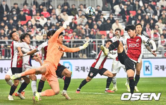 [OSEN=부산, 이석우 기자] 6일 부산아시아드주경기장에서 K리그 승강 플레이오프(PO) 1차전 부산 아이파크와 수원FC의 경기가 열렸다. 부산 아이파크 구상민 골키퍼가 공을 쳐 내고 있다. 2023.12.06 / foto0307@osen.co.kr