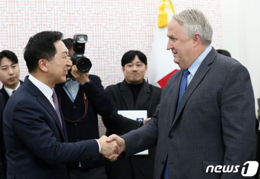 김 대표와 인 위원장은 이날 오후 5시 국회 본관 당대표실에서 약 20분 동안 만났다. 두 사람이 비공개 대화에 앞서 나눈 3분간의 대화 및 기념촬영을 제외하면 양측의 대화는 약 17분 이뤄졌다.