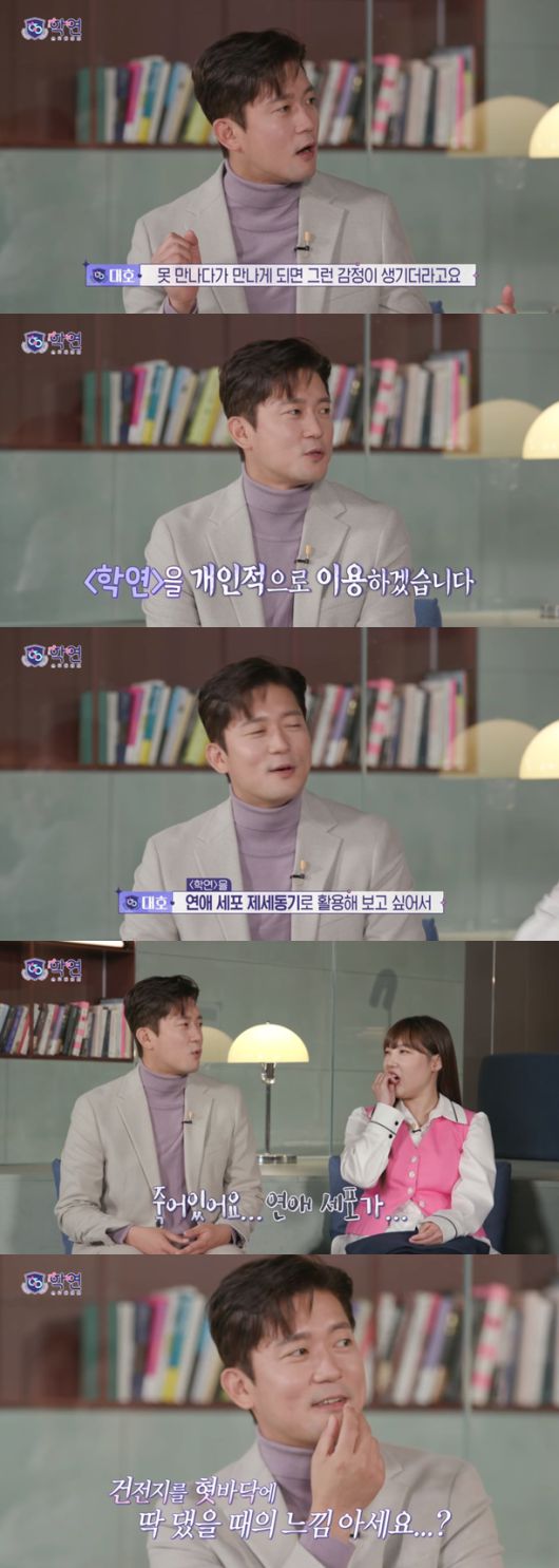 이어 김대호는 "나는 '학연'을 개인적으로 이용하겠다"며 "내가 연애를 안 한 지 7년이 넘었다. 연애 세포가 죽어 있다. 연애 세포 제세동기로 좀 활용하고 싶다. 저 좀 살게요"라고 절절한 심정을 밝혔다.