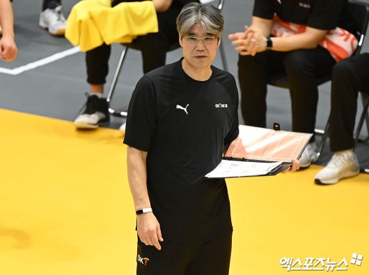 (엑스포츠뉴스 의정부, 김한준 기자) 6일 오후 경기도 의정부실내체육관에서 열린 ‘도드람 2023-2024 V-리그’ KB손해보험과 OK금융그룹의 경기, OK금융그룹 오기노 감독이 경기를 지켜보고 있다.김한준 기자 kowel@xportsnews.com