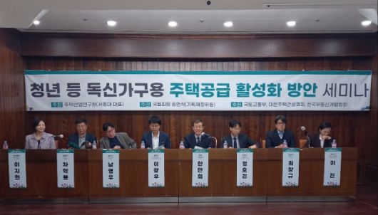 주택산업연구원은 6일 국회도서관 소회의실에서 송언석 국회 기획재정위원회 의원 주관으로 개최한 '청년 등 독신가구용 주택공급 활성화 방안' 세미나에서 "오피스텔 등 비아파트의 공급이 너무 빠르게 감소하고 있다"며 "세제와 건축기준 등을 하루빨리 정비해야 한다"고 밝혔다.