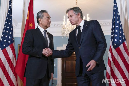 [베이징=AP/뉴시스]유세진 기자 = 토니 블링컨 미 국무장관과 왕이(王毅) 중국 외교부장이 6일 양국 관계의 최근 진전을 더욱 굳건히 다져나가는 한편 가자지구에서의 이스라엘-하마스 분쟁 확산을 막기 위해 협력하기로 합의했다.