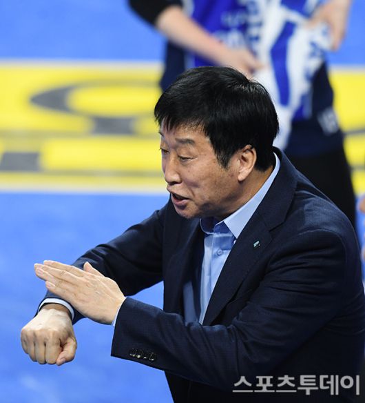 IBK기업은행 김호철 감독이 심판 판정에 항의하고 있다.
